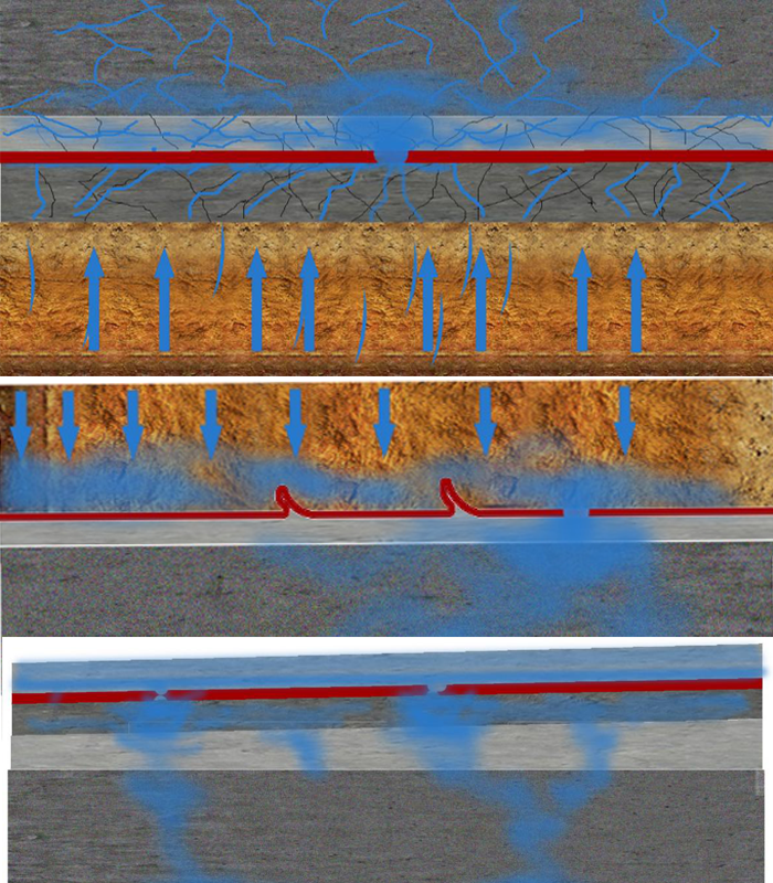 1. 底板設計缺陷:防水層與結構底板間的保護層容易發生竄水,防水層出現缺陷后,滲漏水會沿著保護層間隙擴散,導致底板出現大面積滲漏水,難以根治滲漏隱患。